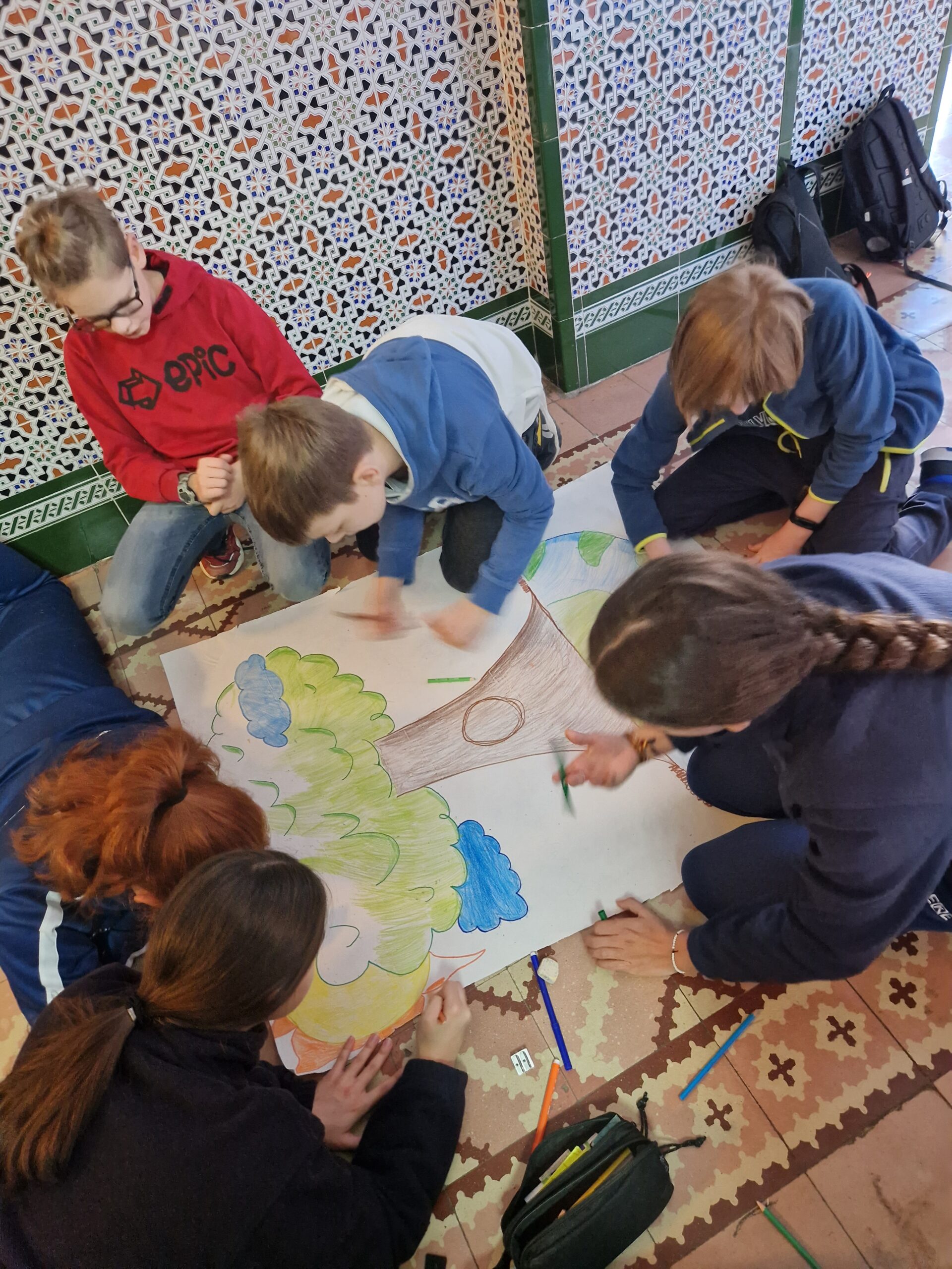Uczniowie spędzili wiele godzin w szkole partnerskiej Colegio Nuestra Señora del Pilar, gdzie uczestniczyli w zajęciach, poznawali codzienne funkcjonowanie hiszpańskiej szkoły i integrowali się z rówieśnikami. Praca projektowa, rozmowy w języku angielskim i hiszpańskim oraz wspólne aktywności na dziedzińcu były okazją do rozwijania otwartości i kompetencji międzykulturowych.